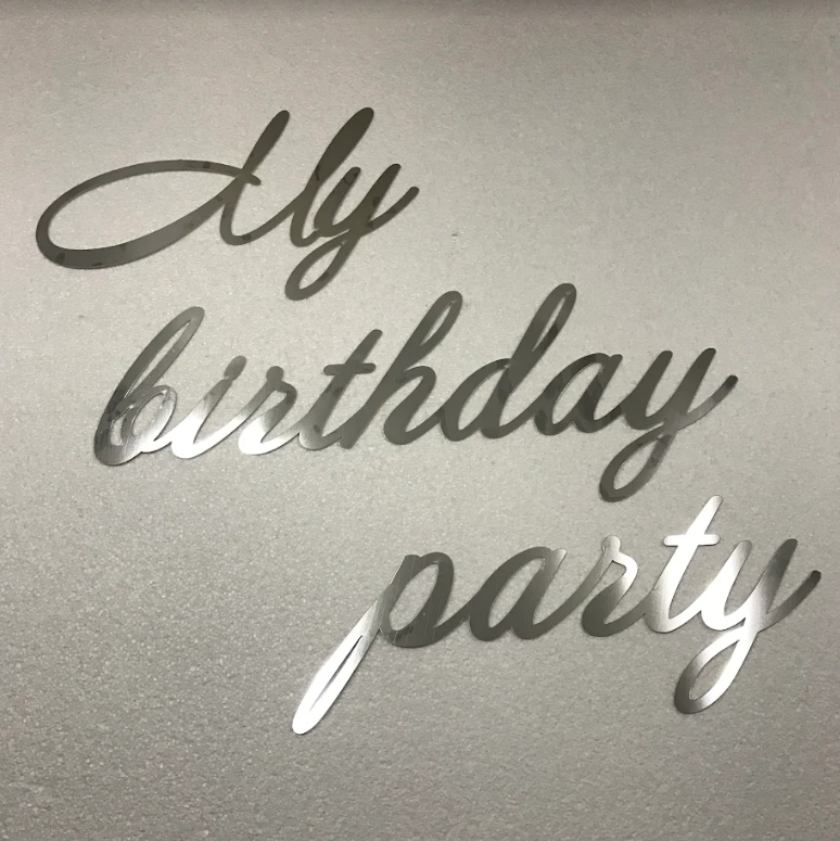 Напис "My birthday party" із дзеркального пластику Manific Decor на стіну для фотозони Срібний 50х40 см